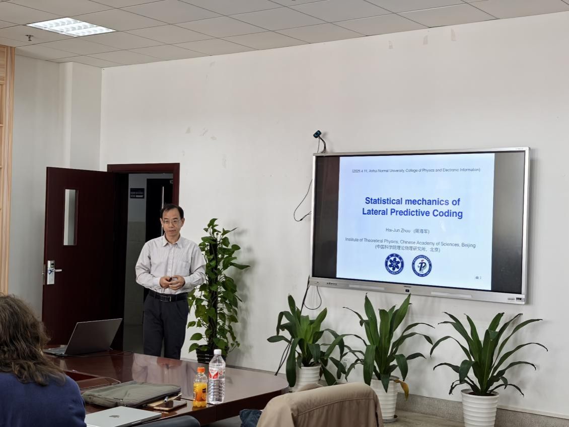 邀请,中国科学院理论物理研究所周海军研究员于4月11日来校进行学术交流,并做了题为《最优侧向预测编码网络的统计物理学》的学术报告。报告会在学院310会议室举行,会议由无翼鸟