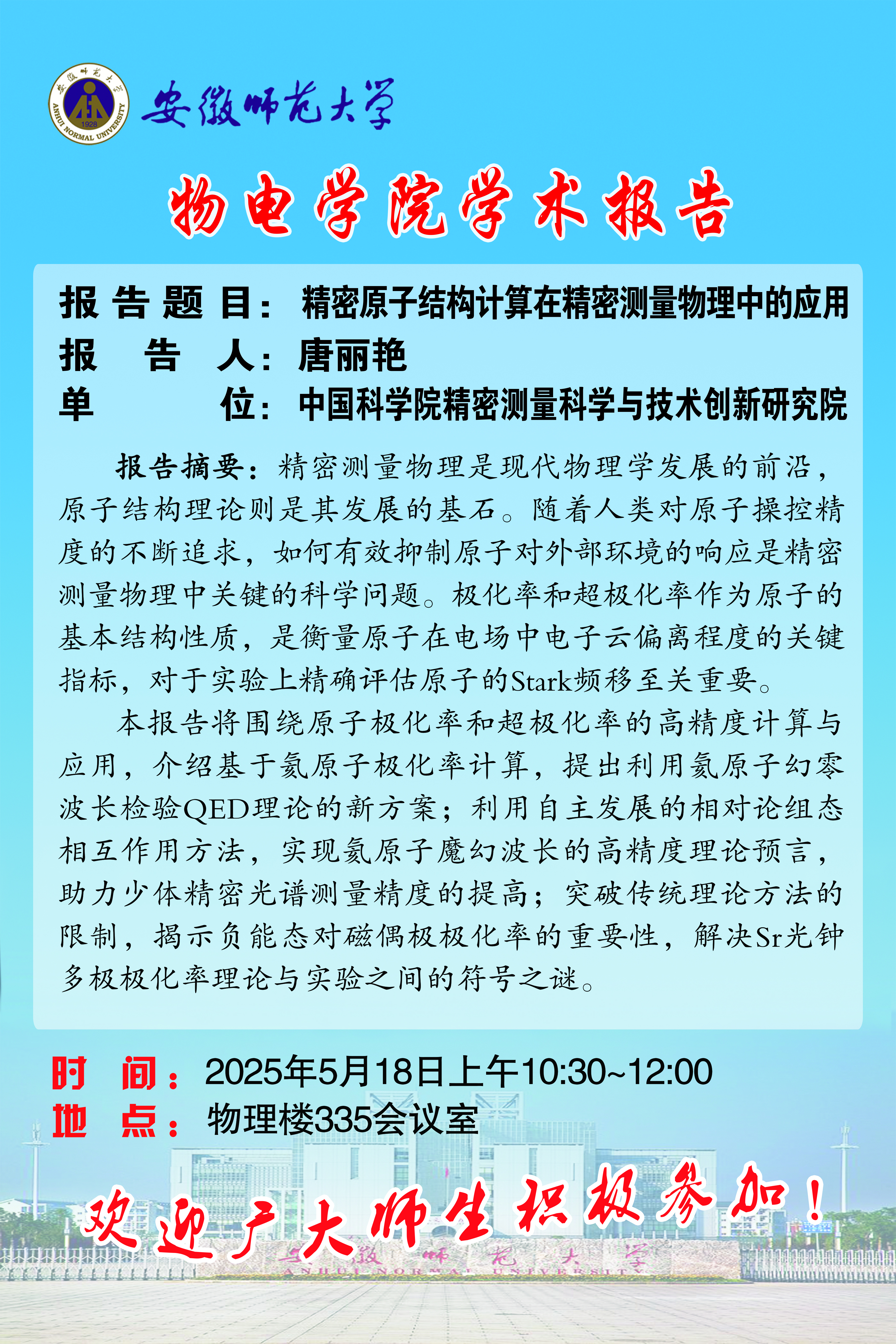 【学术预告】物电讲坛2025年第25期:精密原子结构计算在精密测量物理中的应用