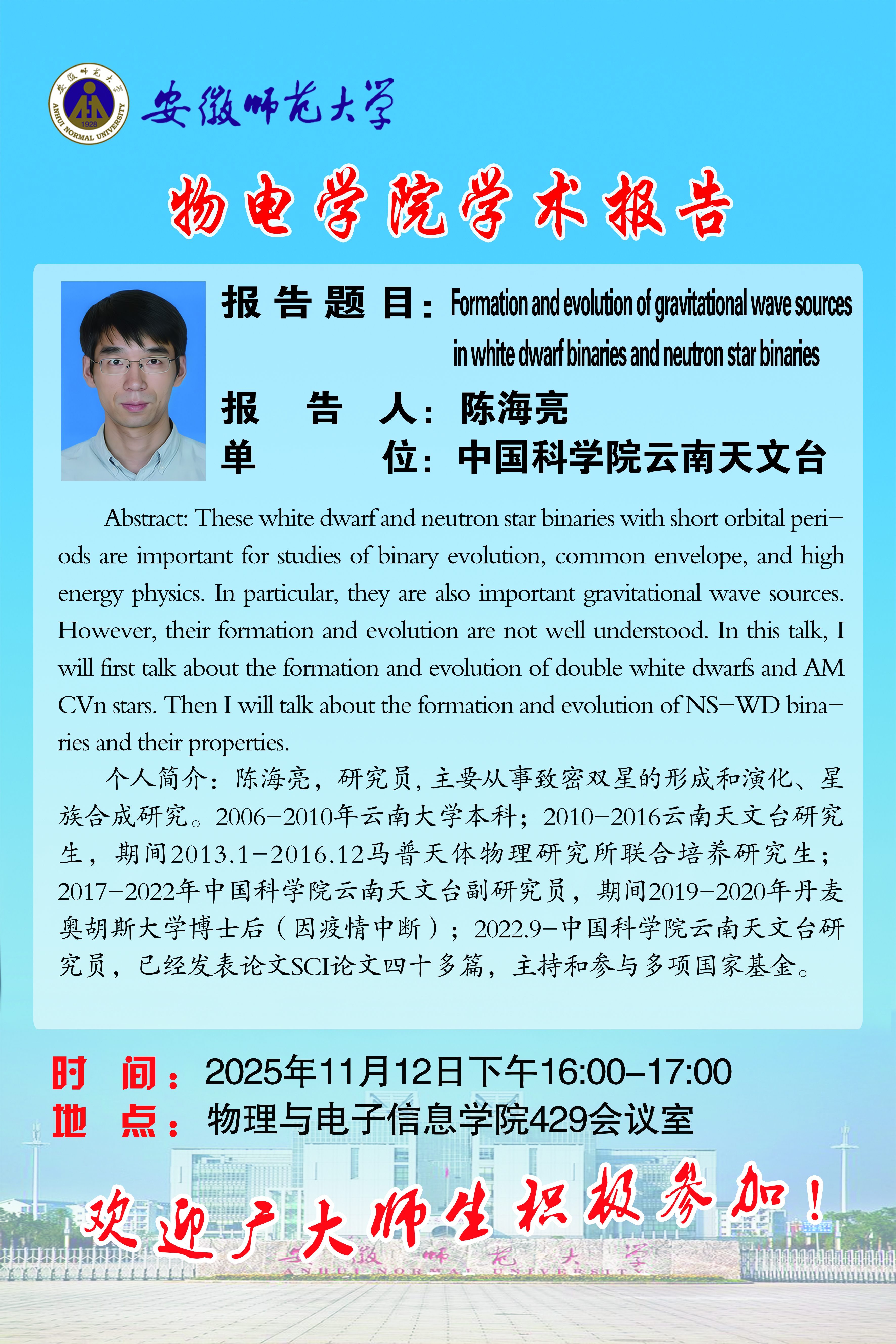 地址:花津校区-安徽省芜湖市九华南路189号 邮编:241000 电话:0553--3869894