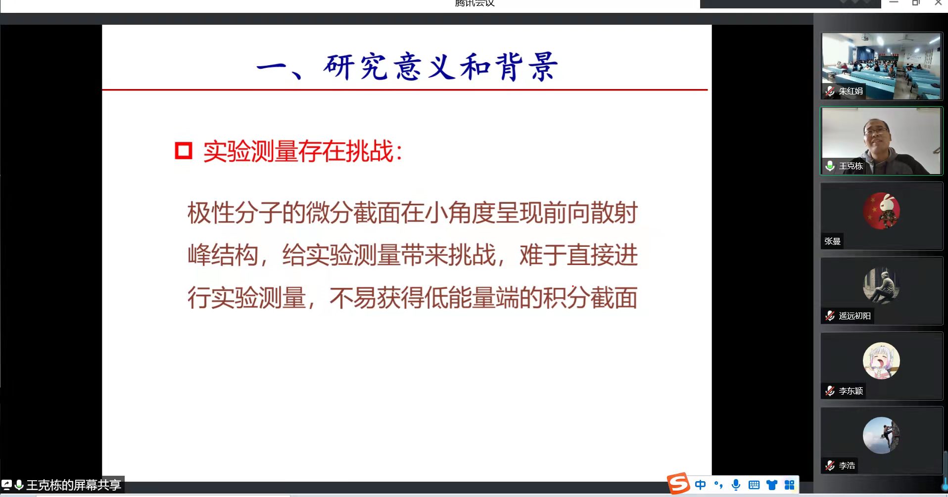 邀请,河南师范大学王克栋教授于4月30日与我校师生开展线上学术交流,并作了题为《低能电子分子散射共振态及其动力学研究》的学术报告。报告会通过腾讯会议(会议号:288795291)举行,由无翼鸟