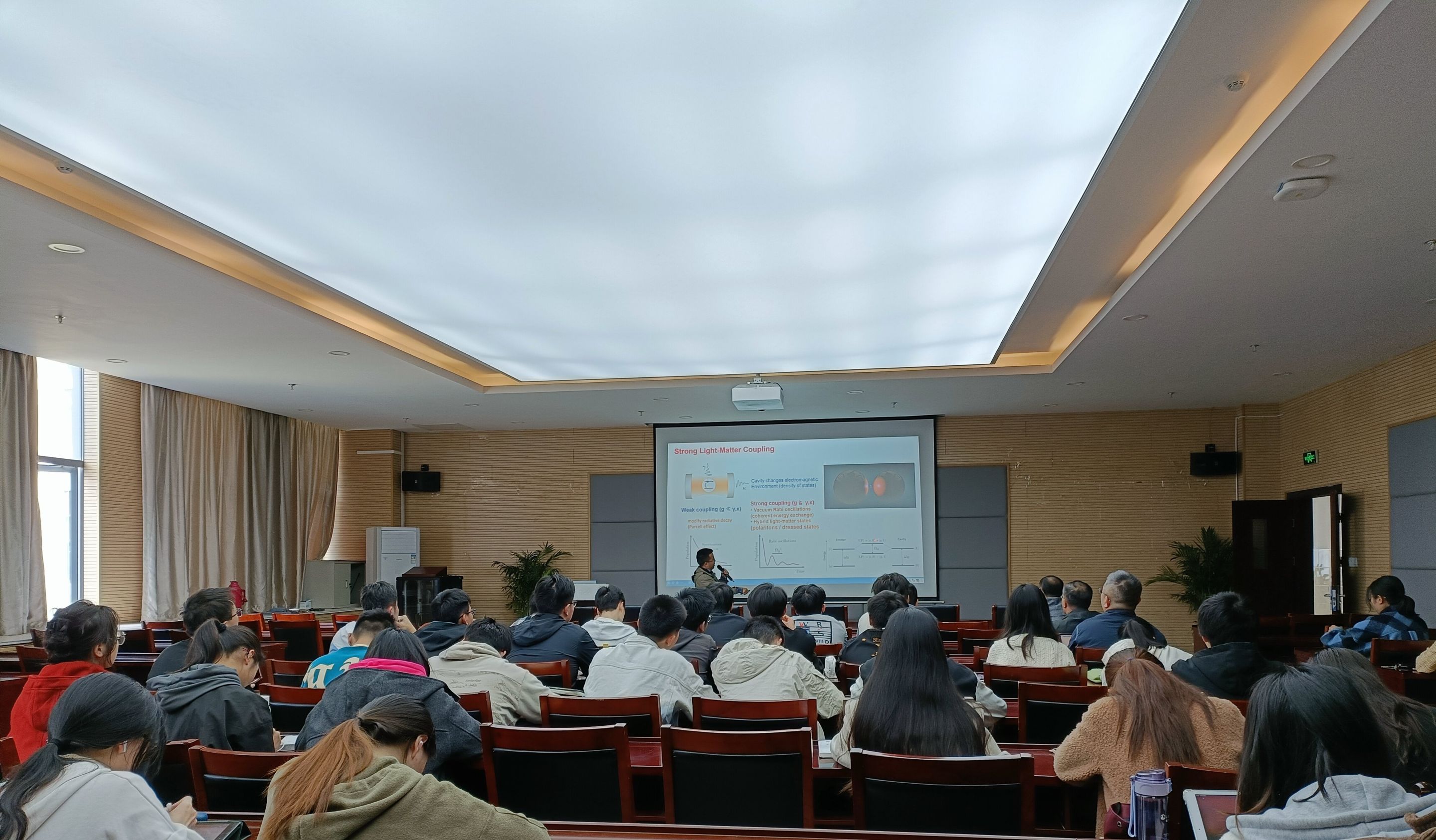 报告会上,束传存教授阐述了当光学腔场的电磁模与分子的电子、振动或者转动模式产生强耦合时,会形成一种具有光子和分子纠缠性质的分子极化子(Molecular Polariton),它有机融合了量子光学和化学物理两前沿交叉领域,并推动极化子化学(Polariton Chemistry)新领域的快速发展。同时,束教授介绍了中南大学超快量子调控研究组在量子调控分子极化子方面的研究进展,展示了如何实用新发展的量子调控理论设计复合太赫兹光场,用于精准调控单个转动分子与真空腔场强耦合形成的分子极化子。束教授在报告中同与会师生分享了课题组在超快物理、量子光学和控制理论等交叉方向的研究,相关研究成果已实现调控非线性光学效应在量子光学、量子信息、量子计算和量子生物学等领域具有十分重要的物理意义和基础前沿研究价值。报告会结束后,与会师生就相关问题同束传存教授展开了热烈讨论和交流。