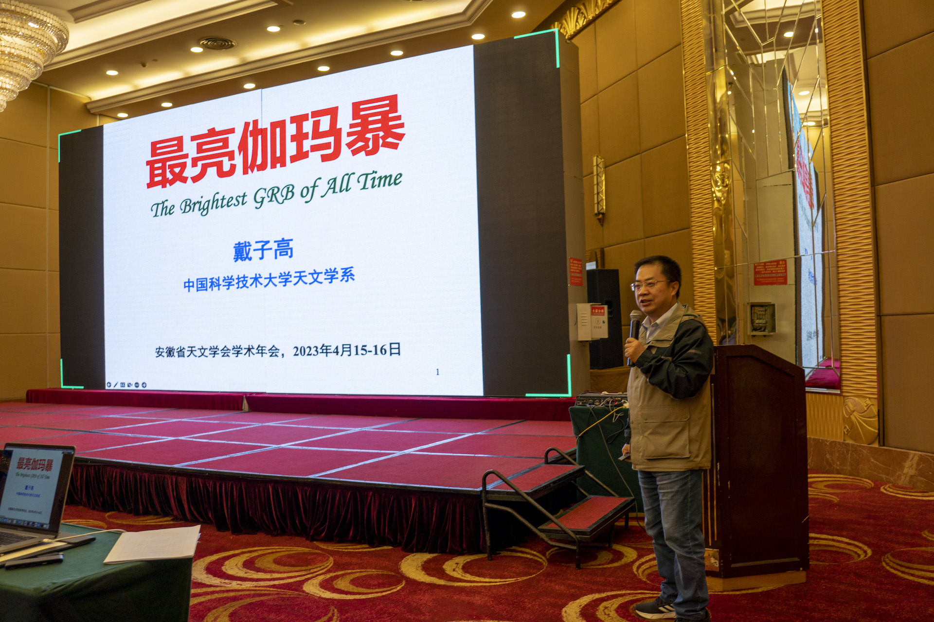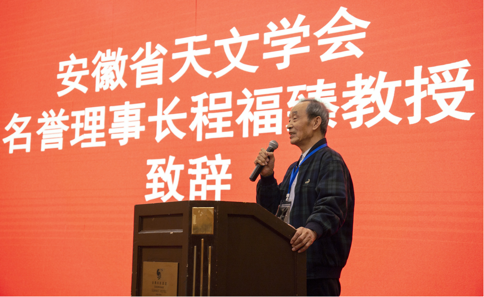 在天文研究领域和团队建设所取得的积极进展。安徽省天文学会名誉理事长、中国科学技术大学程福臻教授代表安徽省天文学会致辞。他指出本次年会恰逢安徽省天文学会创会40周年,也是安徽省天文学术年会首次邀请兄弟省份天文学会的领导和专家莅临指导工作,这是对省内天文学术交流的一次极大的提升,希望省内各高校应继续强化省内外学术研究与交流,积极推动安徽省天文学的发展。