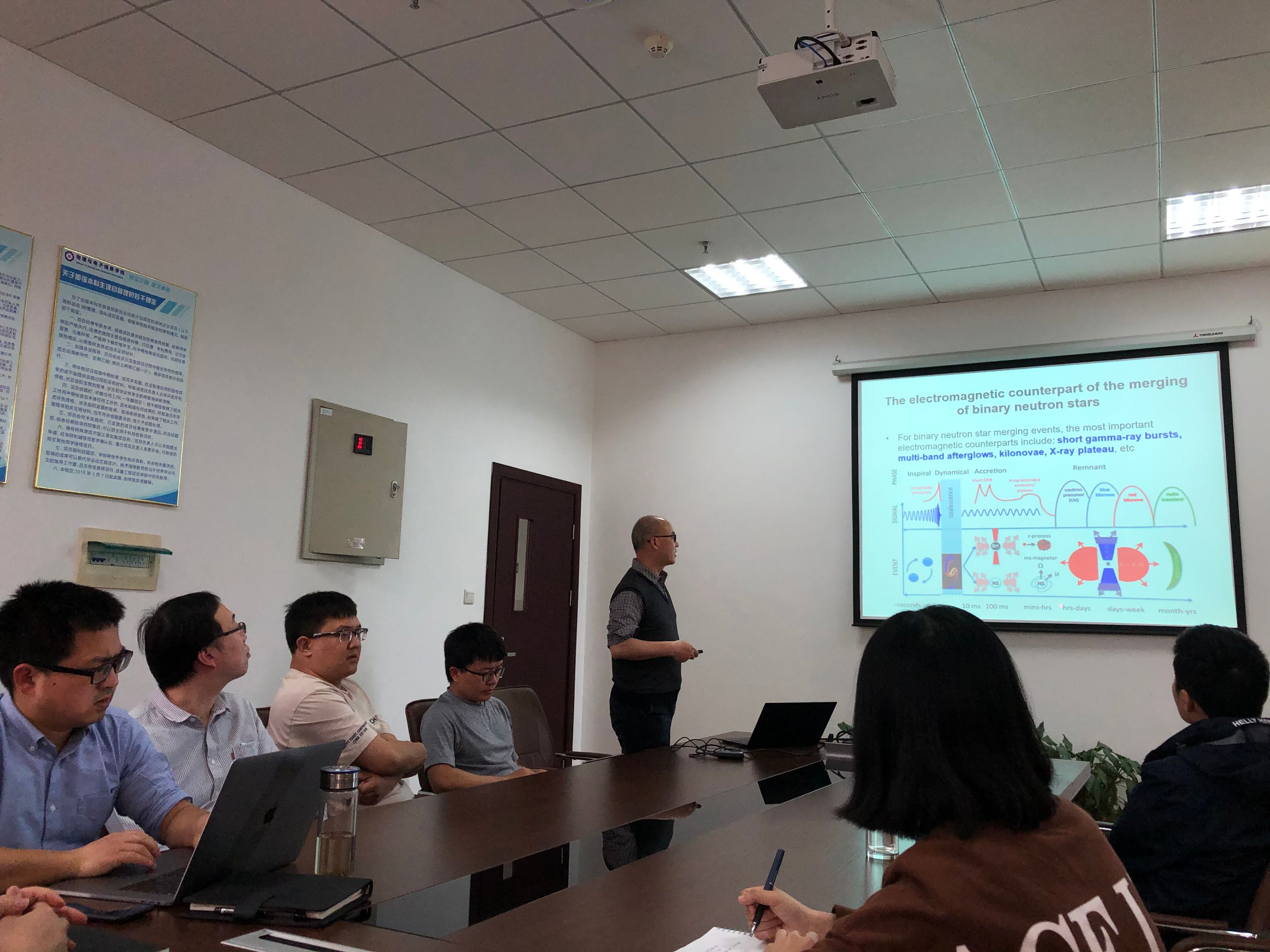 邀请,中国科学技术大学赵文教授于4月27日来校进行学术交流,并做了题为《引力波电磁对应体搜寻及其宇宙学应用》的学术报告。报告会在学院429会议室举行,会议由无翼鸟