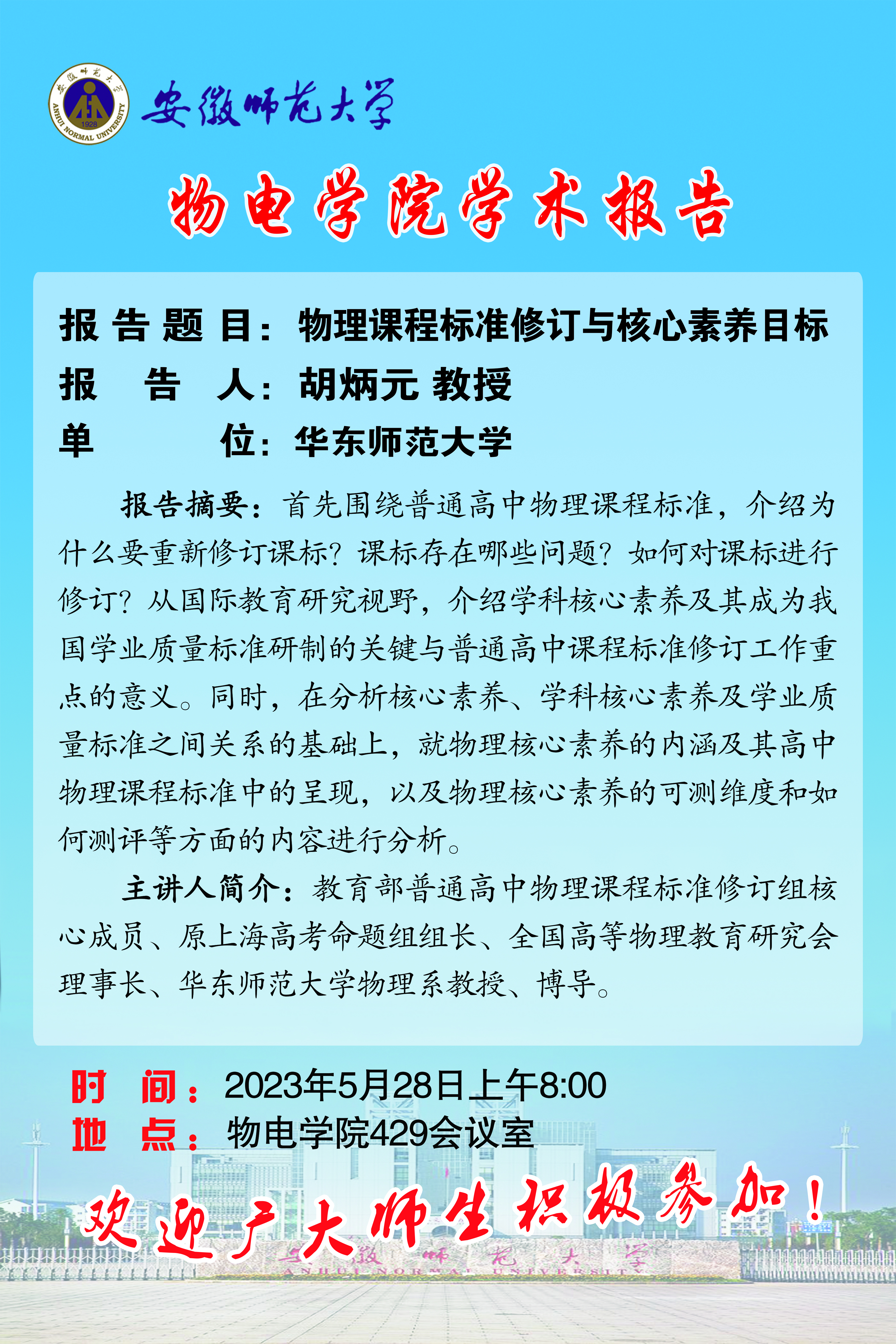 地址:花津校区-安徽省芜湖市九华南路189号 邮编:241000 电话:0553--3869894