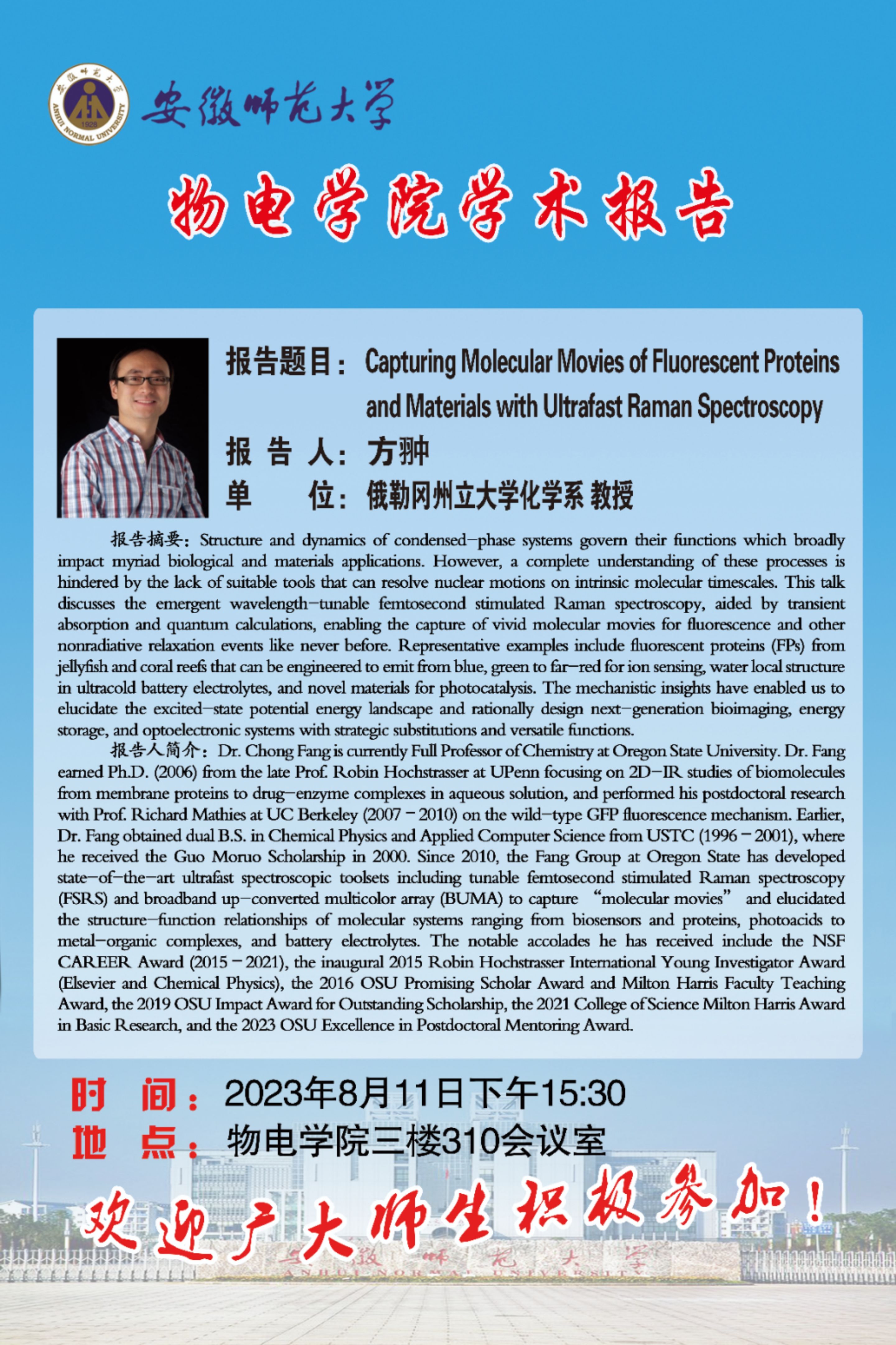 地址:花津校区-安徽省芜湖市九华南路189号 邮编:241000 电话:0553--3869894