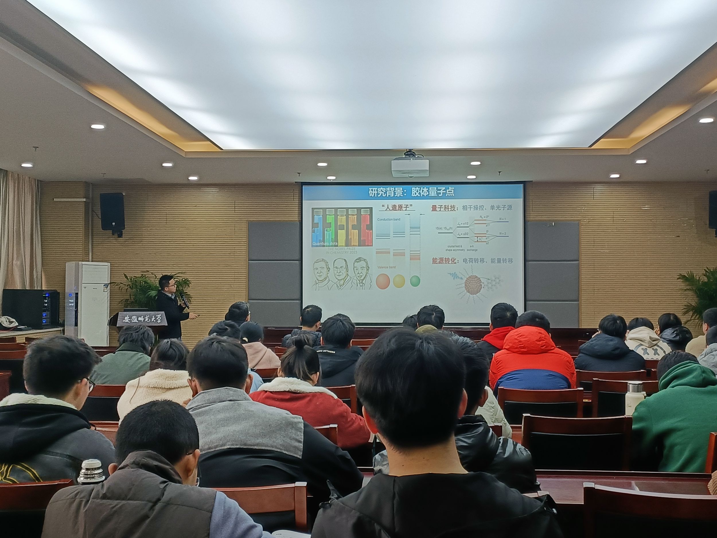 邀请,中国科学院大连化学物理研究所吴凯丰研究员于12月6日来校进行学术交流,并做了题为《量子点超快光物理与光化学》的学术报告。报告会在学院304会议室举行,会议由陆洲教授主持,无翼鸟