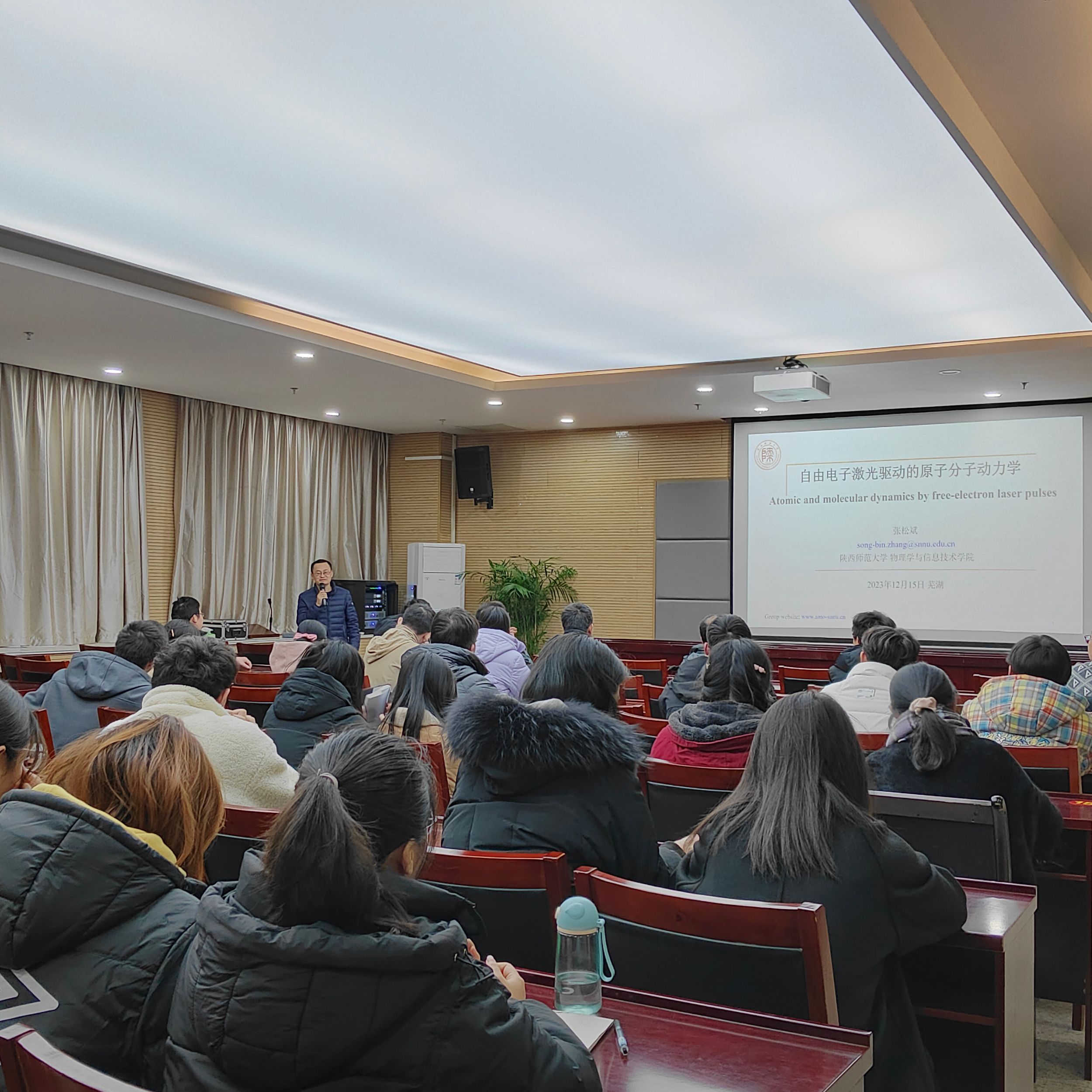 邀请,陕西师范大学张松斌教授于12月15日来校进行学术交流,并做了题为《自由电子激光驱动的原子分子动力学》的学术报告。报告会在学院304会议室举行,会议由盛晓伟教授主持,无翼鸟