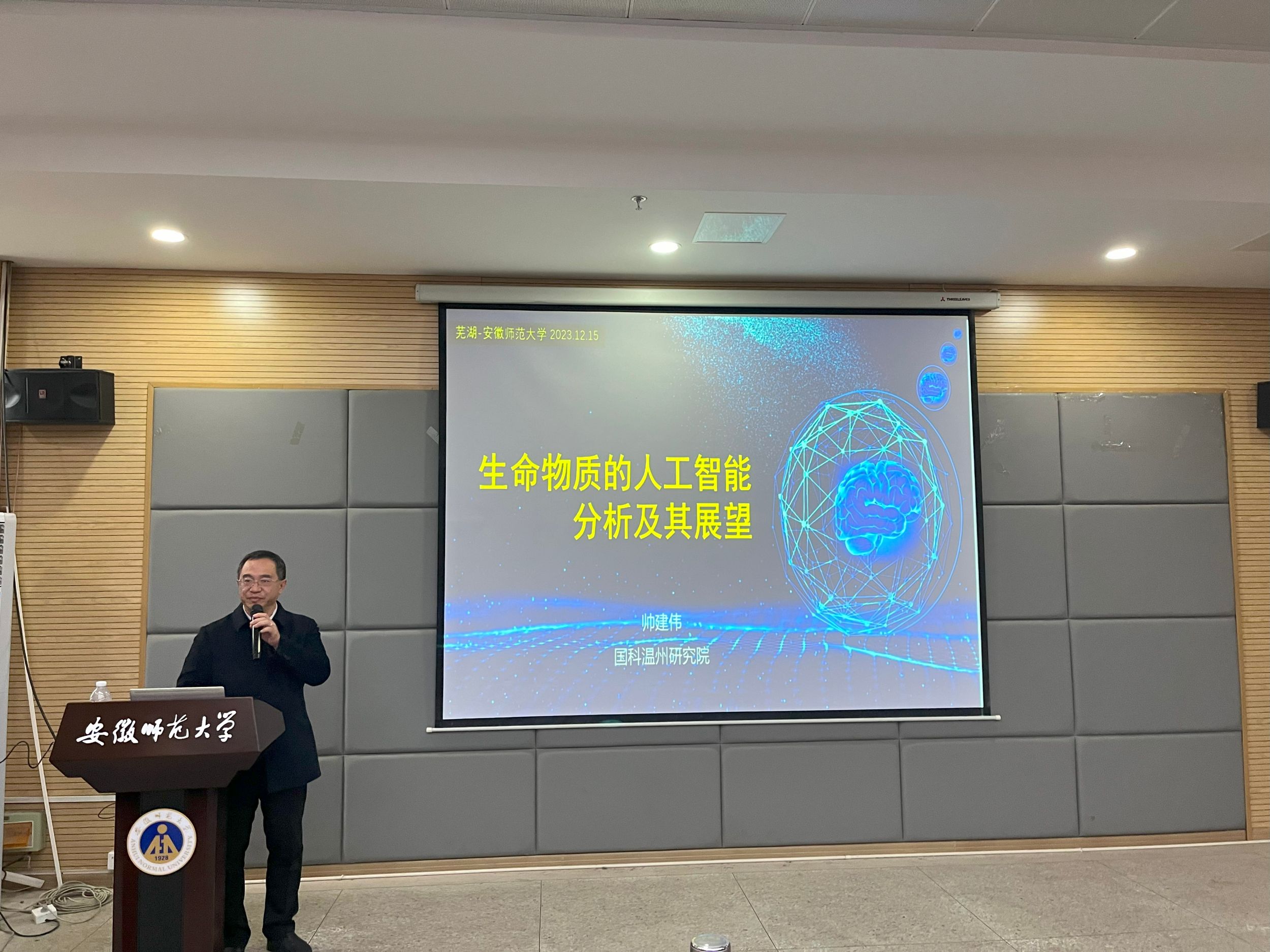 邀请,国科温州研究院帅建伟教授于12月15日来校进行学术交流,并做了题为《生命物质的人工智能分析及其展望》的学术报告。报告会在学院335会议室举行,会议由吕建平教授主持,无翼鸟
