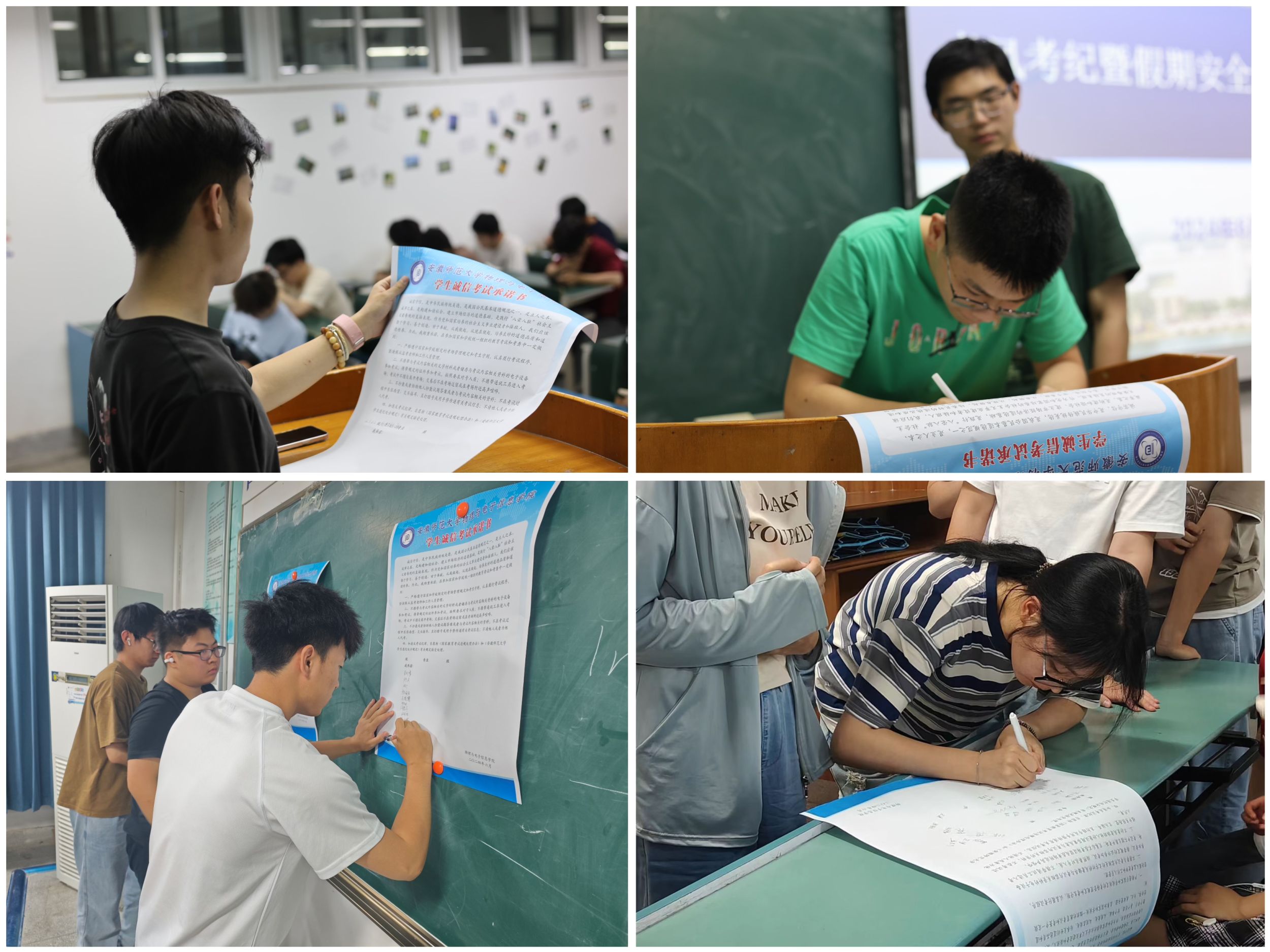 承诺践诺,营造诚实守信良好氛围。学院各班级带领学生认真学习《安徽师范大学学生违纪处分规定(修订)》、《安徽师范大学普通全日制本科毕业生学士学位授予办法(修订)》的相关规定,现场组织全体学生阅读并签署诚信考试承诺书,同学们对个人、班级、学院、学校作出郑重承诺,践行诚信考试承诺,自觉遵守考场规定,杜绝违规违纪行为的发生。