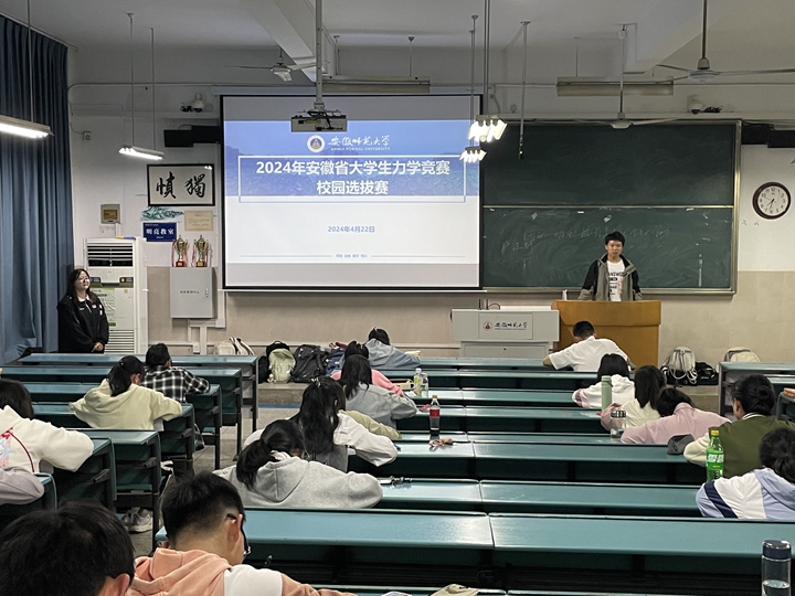 承办、大学生物理爱好者协会协办的2024年安徽省大学生力学竞赛校园选拔赛于4月22日晚在教学楼2号楼举行。选拔赛由校教务处统一安排,学生自愿报名参加,来自无翼鸟
