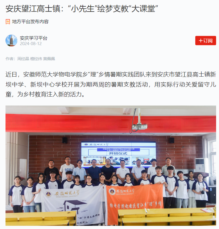 乡“理”乡情暑期实践团队来到安庆市望江县高士镇新坝中学、新坝中心学校开展为期两周的暑期支教活动,用实际行动关爱留守儿童,为乡村教育注入新的活力。