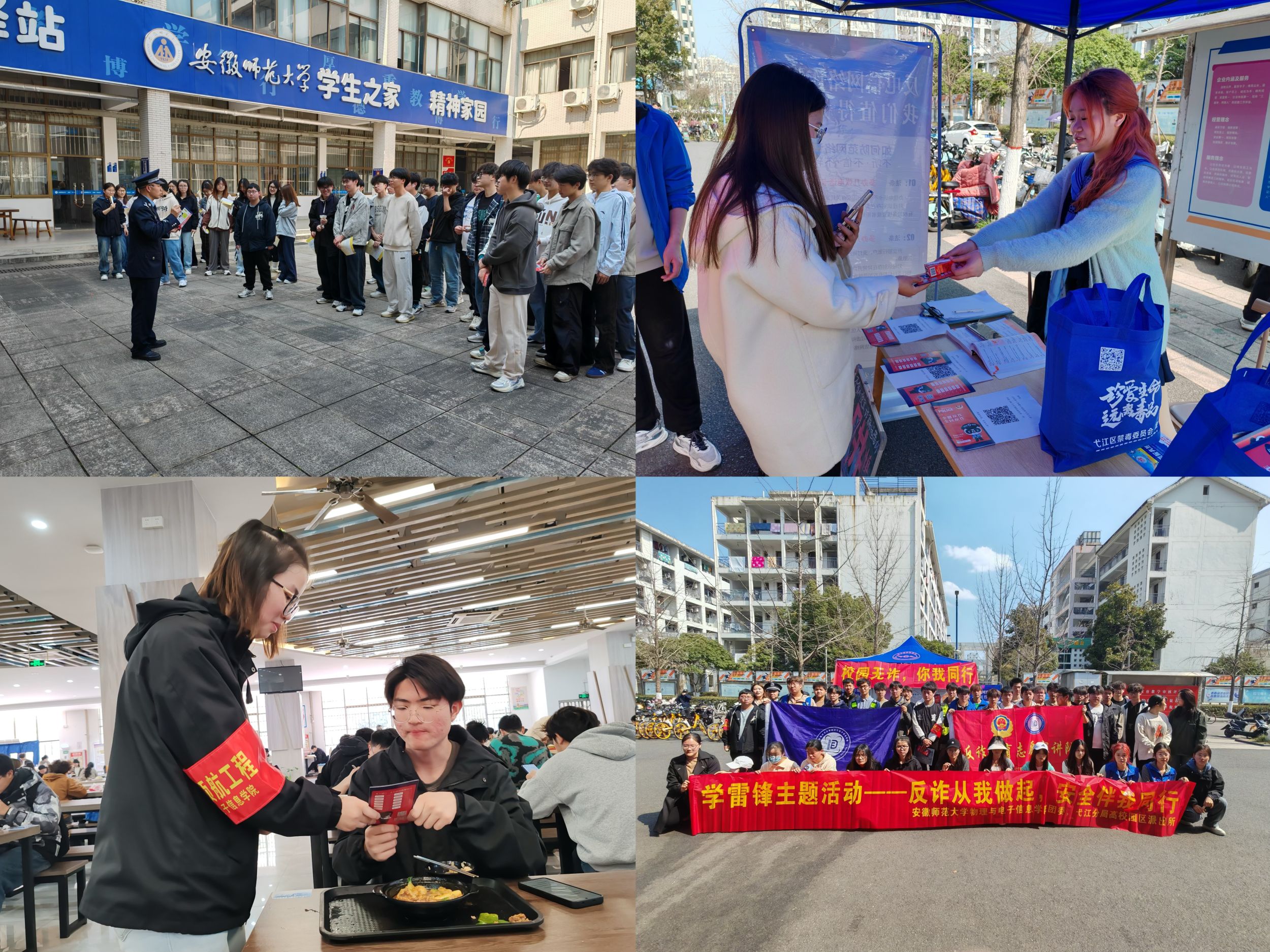 织密防护网络,共筑平安校园。学院反诈宣讲志愿服务队联合弋江区反电诈中心和高校园区派出所,开展以“校园反诈,你我同行”为主题的反诈教育宣讲志愿服务活动。在校内,志愿者们化身“反诈讲师”,通过有奖问答等方式,以真实发生的校园诈骗案例为切入点,深入细致地为同学们讲解当前电信网络诈骗的危害和防范的重要性,来往的同学们踊跃参与,现场气氛热烈,成为了一道独特的“反诈风景线”。同学们纷纷表示,通过本次活动,他们对电信网络诈骗有了更加清晰地认识,在日常生活中会更加注意防范,守好自己的“钱袋子”。