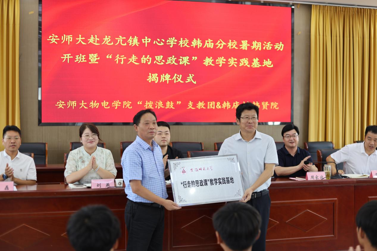 “拨浪鼓”支教团赴蚌埠怀远暑期支教活动开班暨“行走的思政课”教学实践基地授牌仪式在怀远县龙亢镇政务中心报告厅举行,安徽师范大学无翼鸟