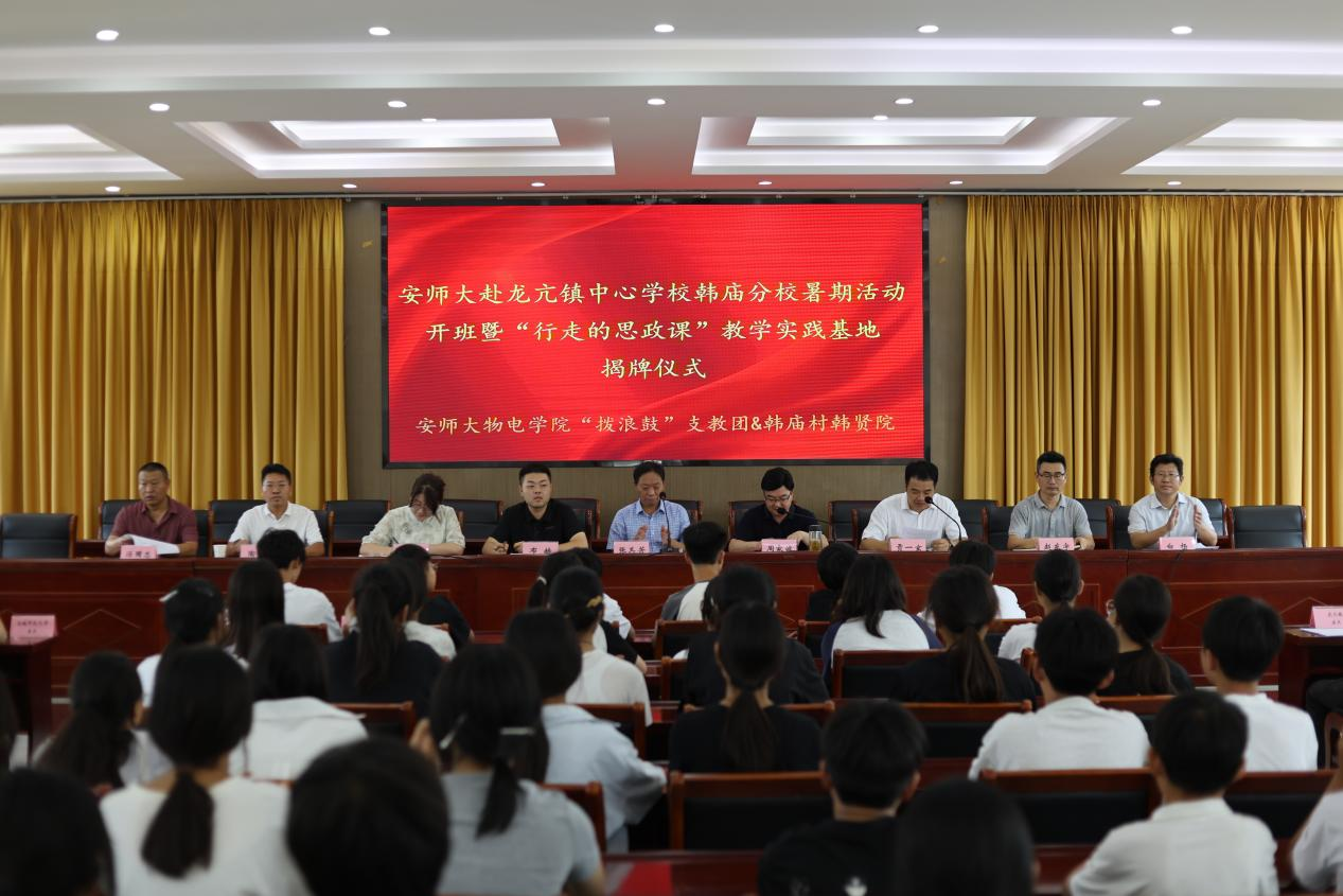 副院长张其芳、龙亢镇镇长周家波、龙亢镇中心学校党总支书记赵东宇、龙亢镇韩庙村党支部第一书记陶磊、龙亢镇中心学校韩庙分校校长白杨、副校长汤国忠等领导老师及暑期支教活动全体师生、部分家长代表出席本次仪式。