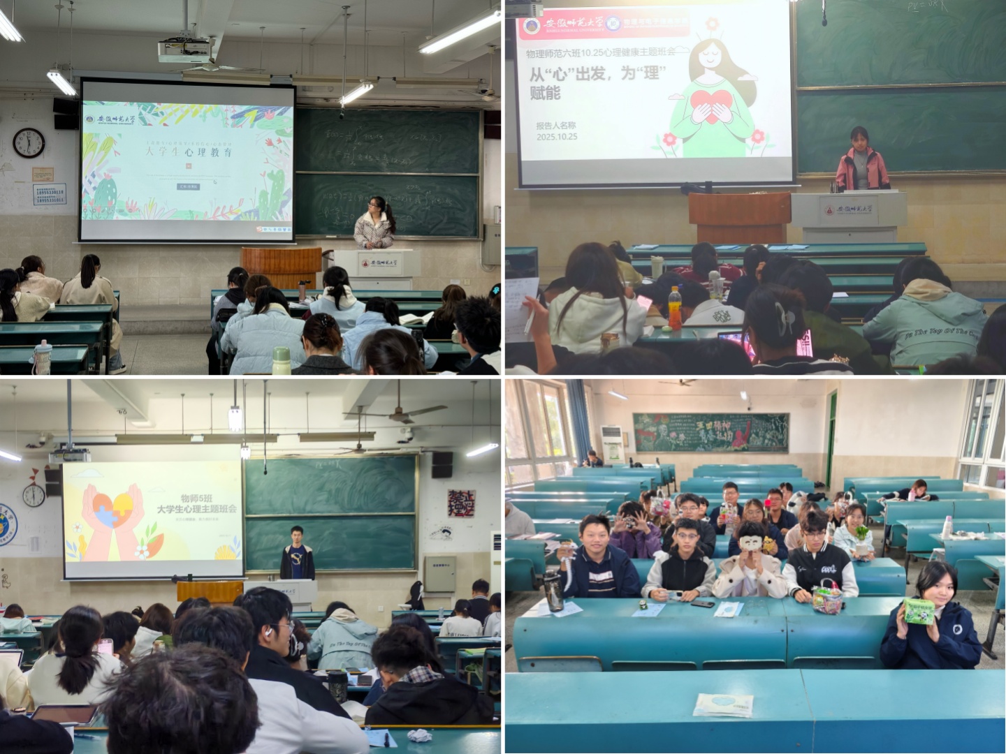 学子心理健康知识储备,增强个体心理健康自我评估、自我调节能力,使心理健康的“种子”在师大“土壤”中生根发芽、开花结果。各专业各班级围绕主题,积极召开心理健康主题班会,以心理健康概念、标准、大学生心理健康问题类型以及防范措施等为宣讲内容,采用视频、书信、游戏互动、知识竞猜等多样形式展开,在同学间广泛宣传,让全员健心蔚然成风。