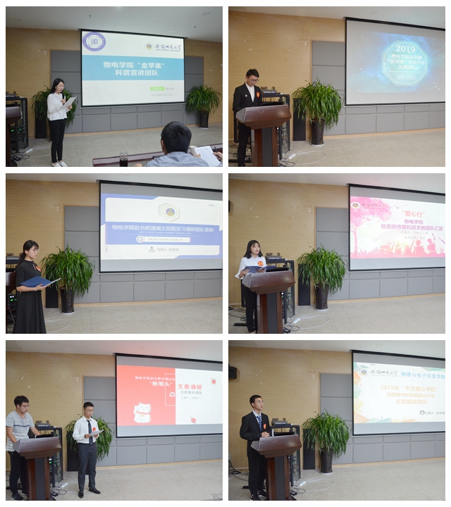 答辩会上,按照抽签顺序,28支团队的负责人依次从实践目的、日程安排、预期成果和后勤保障等方面进行了汇报。他们中有关心山区留守儿童的支教团队,有深入企业生产一线的实习团队,有致力科技创新的竞赛团队,有情系社会矢志科普的宣讲团队。答辩会现场精彩纷呈,汇报选手们用激情洋溢的汇报、详细周密的计划和投身实践的决心向到场的老师、同学们展示了青年学子的风采。