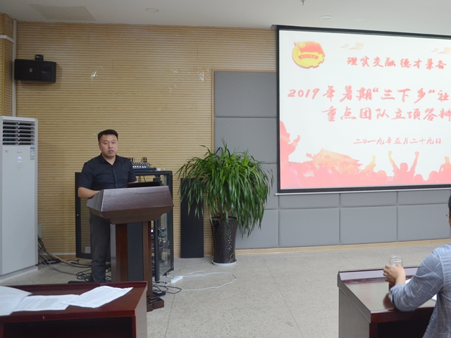 本网讯(院团委 沈翔)为进一步加强实践团队建设,不断增强实践活动的可行性、创新性与实效性,5月29日晚19:00,学院在理化大楼304报告厅召开2019年暑期“三下乡”社会实践重点团队立项答辩会。院党委副书记黄友生,专业教师蔺玉柱、汪志荣、周正仙、甘露担任评委。全体专兼职辅导员、院团委全体成员、答辩团队代表参加了答辩会,会议由学院团委书记宋凤楼主持。
