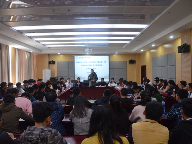 无翼鸟)4月10日中午,学院在335报告厅召开安徽师范大学第十二次学生代表大会和第一次研究生代表大会代表推选会的第一次会议。院学生会、社团骨干以及各班级学生代表参加了会议。会议由学院团委书记宋凤楼主持。
