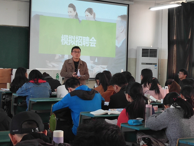 王海芹 李丽诗)近日,2016级电子信息工程、物理学专业于行知楼成功举办班级模拟招聘会。辅导员宋凤楼、2016级电子信息工程、物理学专业全体成员共同参与。