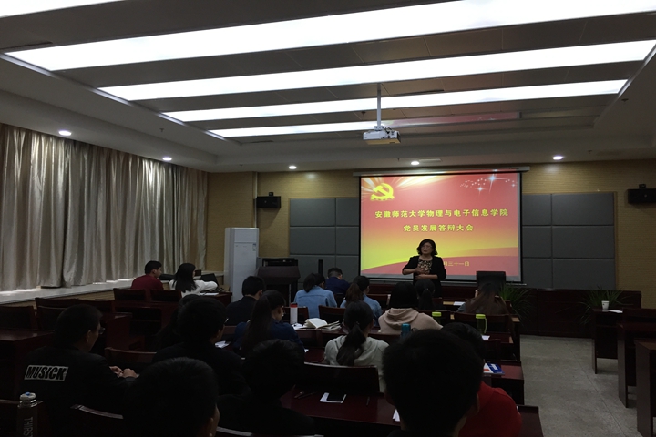 物理学与电子信息工程本科生党支部于10月31日下午在物理楼335会议室开展党员活动日活动对本学期拟发展对象进行集中汇报答辩,院党委书记李娟老师、电子信息工程教工党支部书记高伟老师、物理学教工党支部书记汪志荣老师及物理学与电子信息工程本科生党支部全体成员参加此次会议,会议由电子信息工程本科生党支部书记张杰主持。