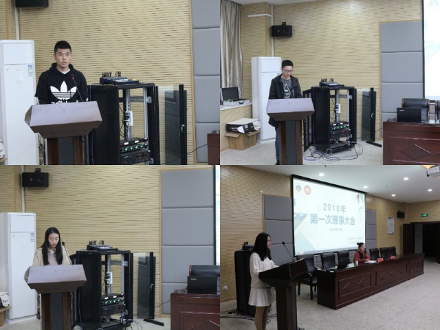 本次会议共有四项议程。大会第一项由黄友生书记进行发言,黄书记首先对新理事的加入表示了热烈的祝贺,对协会的发展表达了真诚的期待,同时向协会全体成员提出了“明确定位抓学习、立足学院树品牌和规范运营中服务”的三点建议和要求。随后协会会长谢胜介绍了2018年各部门情况,并布置本学期协会重点工作,他结合协会过去几年的发展,勉励大家担起责任,克服困难,抓住机遇,砥砺前行。会议第三项,各部门部长对上一学年工作进行述职。最后由李琦琦老师总结发言,她通过介绍历任协会骨干的辉煌成绩,激励协会成员们严格要求自己,锻炼自身能力,努力学习,珍惜部门培训和协会培训机会。除此之外,李老师还表示协会是展示能力、锻炼自己的平台,新的学期要加强协会成员对协会的信心和责任心,找准自身定位,努力工作,积极进取。