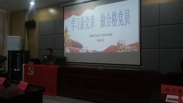 第6期预备党员培训班在物理楼335会议室举行。院党校副校长、院党委副书记黄友生为学员们授课。