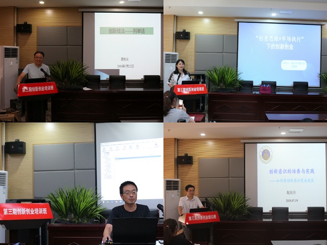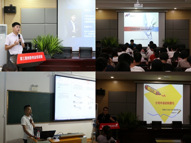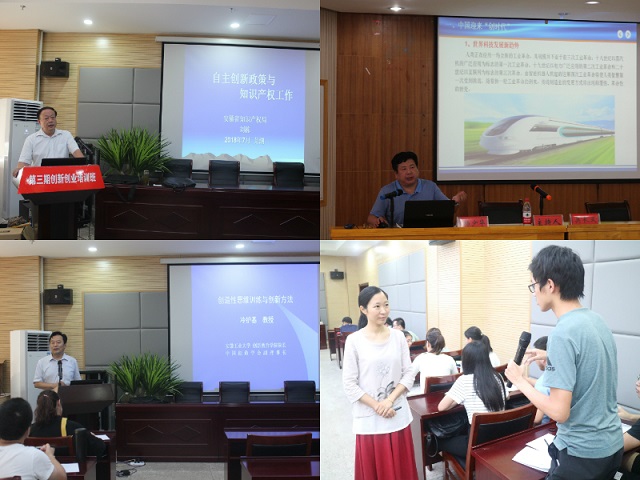 为帮助学员掌握创新创业方法,培训班科学编排课程,邀请安徽省知识产权局副局长刘栋、芜湖市知识产权局局长杨少华、安徽工业大学创新教育学院院长及中国创造学会副理事长冷护基、安工大创新教育学院副教授陈霞、芜湖市专利代理公司专家、市孵化器专家、安徽师范大学朱向冰、王霞霞、陶海升,高级知识产权工程师吴长义等一批校内外专家亲临培训班集中授课,课程包括创造性思维与方法、国家及安徽省知识产权发展形势与政策解读、创新方法与技能、专利文件撰写方法等理论知识。教师把实践经验融入课堂教学,用亲身经验为学员讲解具体的创新创业问题,帮助学员掌握创新技能、熟悉创业基本流程和方法,提升学员综合素质。