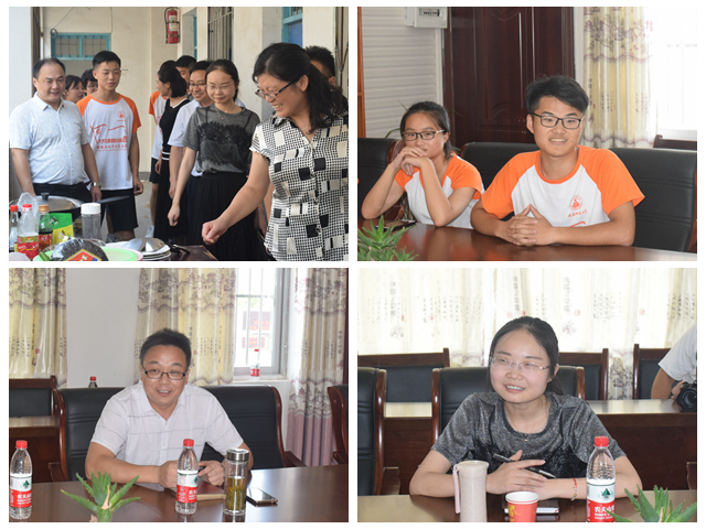 清晨,谢雯、李娟书记等一行抵达宿松县洲头初级中学。领导老师们走进支教课堂,看到了一节别开生面的数学课,以兴趣为导向、师生互动、笑声不断。随后,领导老师走访了支教队员宿舍、关心支教队员们的日常生活,对同学们吃苦耐劳的精神予以赞扬。师生座谈会上,支教队员们分享了几天的实践心得。魏潘晨说:“十分感谢洲头中学领导老师对支教团队的关心与支持,我们在实践活动中完成的不仅仅教授学生知识的任务,也收获了感动和成长,深刻体会作为一名老师的辛苦、责任和担当。”我校2012届校友、教育局副局长谢雯表示十分感谢各位支教队员利用暑期来到宿松实践,怀着满满的爱心给我们当地的孩子们送来欢乐,希望大家能够充分把握此次支教的机会,积累人生经验、磨砺意志品质,为今后的工作与生活打好基础。座谈会在一片欢声笑语中结束。