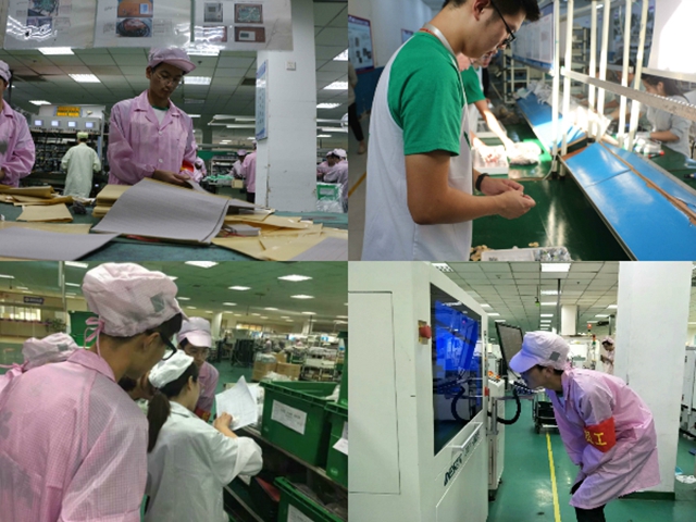 生产线上,队员们为PCB板插件、给显示器贴海绵包层、检查控制器性能好坏及最后的打包几道工序,刚开始队员们因为初次接触,还不能很好地掌握技巧,孰能生巧,速度慢慢地赶了上来,减少了不必要的等待浪费。从早8点到晚7点单调重复的劳动并没有让队员们产生懈怠心理,相反,大家越做越起劲,赶在下班之前完成了3700的任务量。而那从多到少、从有到无的变频周转箱见证了队员们的劳动和成长。