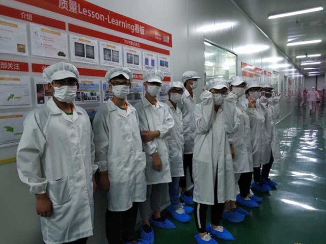 团队经过之前一整天的安全培训、一整套的检查流程以及一整天的工作时间已经深深感受到了纪律的严谨性。安全有三级培训,分工厂级、分厂级、班组级;进车间必须从头到脚“全副武装”,流程必须走对;白班、晚班都是十二个小时,吃饭、休息时间有明确的规定,即上班时间出车间必须登记信息且有时间限制。严格的管理制度使得工厂忙忙碌碌但井然有序产量与质量齐头并进。