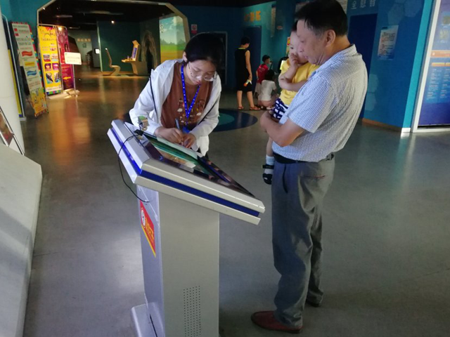 赴池州科技馆志愿服务实践团队十四名成员分批抵达科技馆进行实践。今日馆内人流量较大,同学们依旧很热情地向游客们介绍所陈列的科技展品,也很耐心地向来往的市民朋友调研他们对科技馆的一些看法。前来参观科技馆的市民、游客都积极配合本次调研活动并且给予了支持!