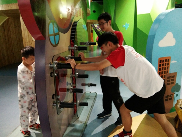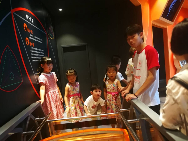 无论如何,安全总是第一位,同学们在引导孩子们玩耍学习的同时,也在时刻关注着孩子们的安全问题,防止他们在玩的过程中出现意外。为此,科技馆的每一个较容易出现意外的项目,都会有同学们的身影,他们牢记着主管人员的规定,保护孩子们的安全。