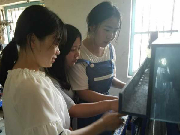 陈永婷)经过了两天电脑横机操作的认真学习,赴滁州市武羊针织厂学习团队的队员们基本了解了电脑横机的运行原理以及简单操作。