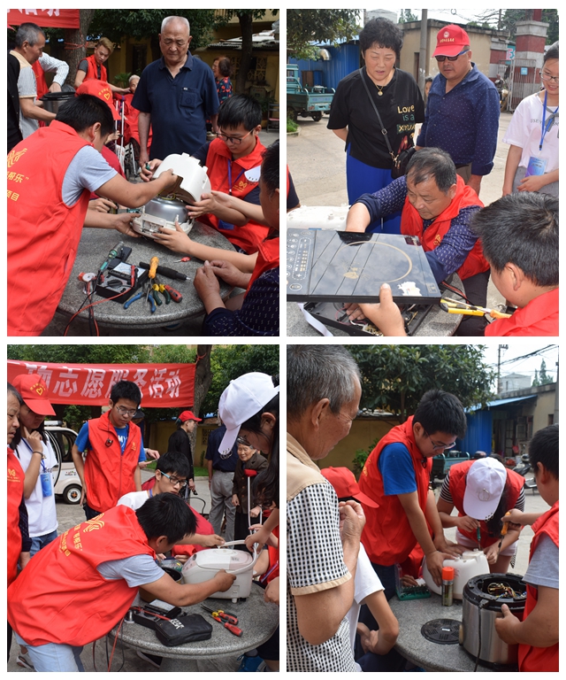 维修期间,有一位老大爷,拿着一个损坏的电饭煲过来维修,并十分好奇同学们是怎么修理有问题的电器,他就站在旁边看着小分队成员们修理,并不时地与小分队成员进行讨论。当老爷爷累的时候,小分队成员也赶紧搬来椅子让老爷爷坐下。最后,老爷爷的电器修好了,他对同学们的义务维修活动十分感激,称赞协会义务维修活动很有意义,并夸奖了同学们的雷锋精神,并希望义务维修小分队能够常来。还有一对夫妇,他们在旁边看着同学们维修,还一直提醒我们要小心点,别伤到自己,令学生感动,也让学生真正体会这次义务维修的内在意义。此次维修还有小区里的会维修电器的叔叔帮助同学们一起,还告诉同学们一些基本的用电常识,让同学们以后在学校家里用电时都把安全放在第一位。时间很快到了中午,活动也已经接近尾声了,可是还有一些电器并没有修理完成,小分队成员坚持将电器修理好之后,才结束了此次活动。