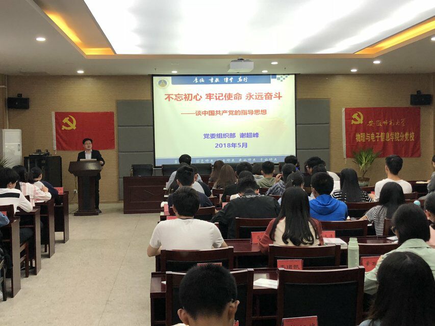 分党校第24期入党积极分子培训班第六讲《党的指导思想》于理化大楼304开课,校党委组织部副部长谢超峰应邀授课。