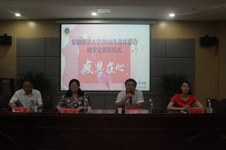 5月18日下午,物电学院在院335会议室举办了2018年安徽师范大学教育基金会昌华爱心助学金颁发仪式。出席颁发仪式的有校信息管理中心主任史铁杰,无翼鸟