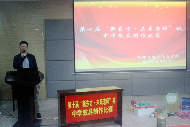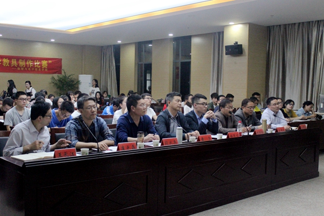 生命科学学院教授陈明林高度评价了此次比赛,并从教育性、创造性、科学性、直观性及实用性等五个方面对参赛作品进行了逐一点评。陈明林指出,教育性是教具制作的目的,好的教具一定是具有教育性的;创造性是教具的关键,使教育突破传统,适合当代教学之用,做到创造性就要人无我有,人有我优,人优我特;科学性是教具的基础,教具要传递正确的知识,他以蛋白质合成过程动态演示作品为例,指出该如何避免出现科学性的错误。直观性是教具制作的重点,他以库仑定律、凸透镜、遗传的翻译过程等作品为例,指出好的教具要能直观展示,清楚的表明原理或知识点;实用性是教具制作的特质,好的教具必须操作方便,制作环保,有推广的价值。陈明林认为,要成为一名研究型的老师,教具是重要的工具,要先研究再创造、制作教具。大赛赞助单位新东方集团人力资源部招聘主管徐克文对本次比赛给予高度评价并鼓励同学们将制作的创新型教具运用到未来课堂。