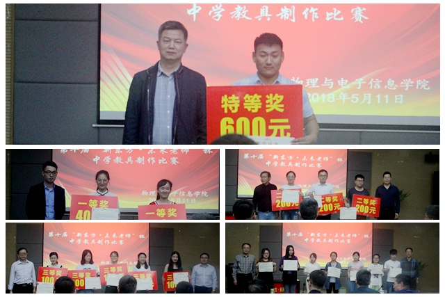 高度重视新师范人才培养,每年都投入大量人力和财力支持此项比赛,并得到用人单位的认同和赞助。教具制作大赛从初赛到决赛历时两个多月,目前已连续举办十届,呈现出一系列的高质量创新性教具,涌现出一群致力于研究、制作教具的团队。一件看似简单的教具折射出同学们思考、探索、实践的全过程,教具制作的过程正是理论与实践相结合、科学与艺术相结合的教育理念践行的过程。
