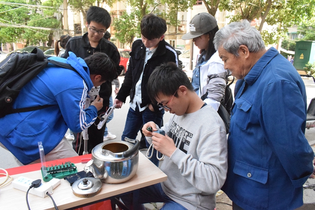 维修期间,有一位老爷爷,拿着一个损坏的充电器过来维修,并特别好奇同学们是怎么修理有问题的电器,他就站在旁边看着小分队成员们修理,并不时地与小分队成员进行讨论。当老爷爷累的时候,小分队成员也赶紧搬来椅子让老爷爷坐下。最后,老爷爷的电器修好了,他对同学们的义务维修活动十分感激,表示特别支持,称赞协会义务维修活动很有意义,并夸奖了同学们的雷锋精神,并希望义务维修小分队能够常来。