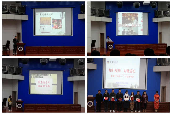 本着“一假一技能、一期一成长”的理念,结合专业特点,以“学做人 、行感恩 、提素质 、长技能”为活动宗旨,组织开展了“四个一” 工程主题实践活动,即读一本好书、做一件回报社会或感恩的事、走访一位优秀校友或成功人士、撰写一篇论文专利或课程设计。2018年3月23日晚,学院在图书馆报告厅举行“四个一”评审会,总结和展示“四个一” 工程活动的成果和收获。校党委组织部副部长谢超峰、校教务处副处长、创新创业教育学院副院长李汪根、校团委副书记汪凯、无翼鸟