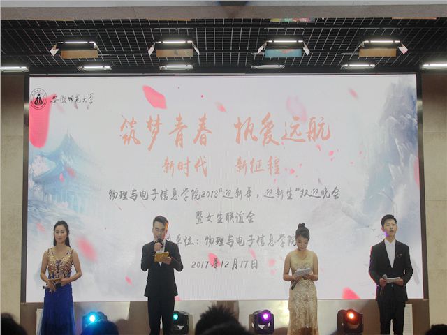 2018年“迎新年,迎新生”双迎晚会暨女生联谊会在花津校区理化大楼报告厅成功举办。学院党委书记李娟、院长崔执凤、党委副书记吴长义、副院长郑贤锋、张其芳及师生代表齐聚一堂,共同欣赏了这场文化盛宴。