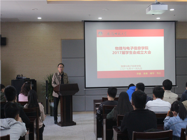 2017年学生会成立大会在物化大楼304会议室顺利召开。院党委副书记吴长义、团委书记米佳佳、学生会指导老师宋凤楼以及无翼鸟