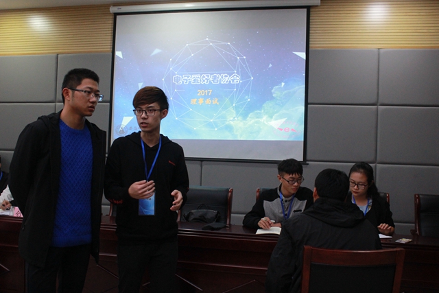 本网讯(文/汤智睿  图/许晨晨)10月16日中午,电子爱好者协会新任理事面试在物化楼335会议室正如火如荼的进行。指导老师许晨晨亲自指导协会全体成员组织新一届的会员面试工作。