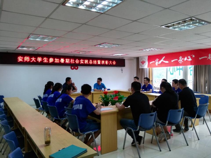 会议开始时,杨总经理首先对此次暑期社会实践目的和成果表示了肯定,接着他又赞扬了同学们在实践中表现出的师大人刻苦耐劳的精神。会议中,鸠江区总经理周文一方面称赞弋江小分队严格遵守芜湖联通的作息时间从不迟到早退,另一方面他感动于物电学子工作过程中表现出的兢兢业业的态度。弋江区总经理张丹简单介绍了队员们的工作情况并加以认可,她表示在此次实践中认识到安师大学子优秀的作风。镜湖区总经理方源表扬了镜湖区小分队的工作成绩,并且希望在未来依旧能与物电学子有良好的沟通。