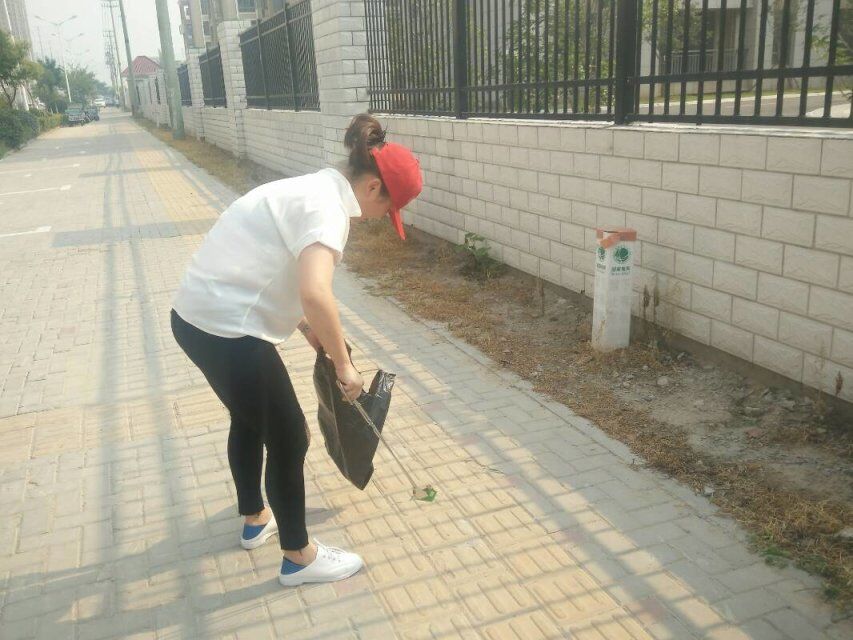 团队成员秉承了不怕苦不怕累的精神,开始了当日的活动。活动地点则集中于桓谭公园毗邻的公路上,而路上的垃圾则以烟头为主。无论是地缝,还是墙角花坛,只要有“不和谐”的因素,都会被挑拣出来。以此也表现了成员们的细心与耐心。