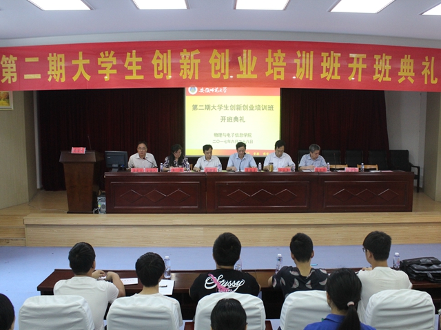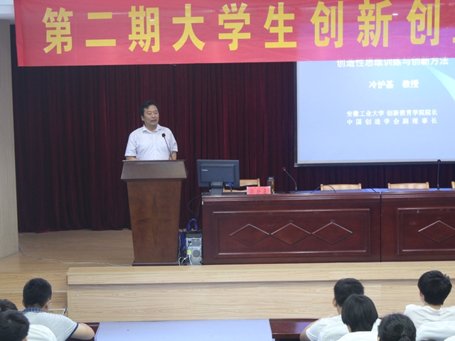 在赭山校区图书馆报告厅隆重举行第二期大学生创新创业培训班开班典礼。安徽工业大学工程实践与创新教育中心主任、中国创造学会副理事长冷护基、安徽师范大学教务处处长席贻龙、科研处副处长耿保友、学院党委书记李娟、院长崔执凤,第二期培训班全体学员、学生科技创新骨干等出席了开班典礼,典礼由学院党委副书记吴长义主持。