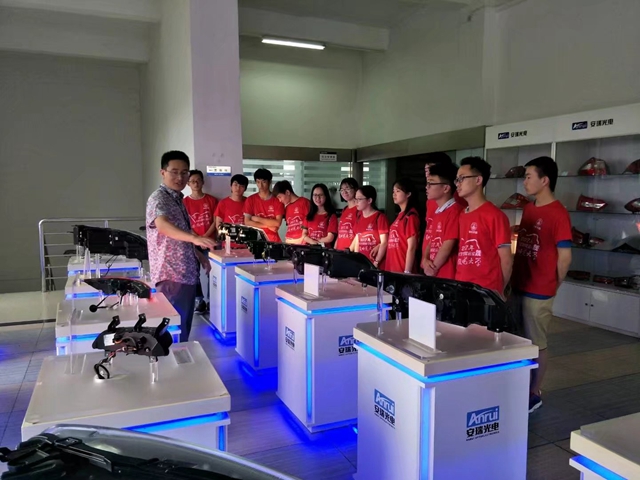 负责人柳经理首先带队参观了灯具模型展台,之后带领这一支队伍参观灯光实验室,并联合实验室负责人具体讲解了其原理与作用并俯瞰了包装生产车间,并在结束后与14名同学畅谈了职场与学习,队员们受益匪浅。最后,刘经理勉励队员们要好好学习,提升自我。