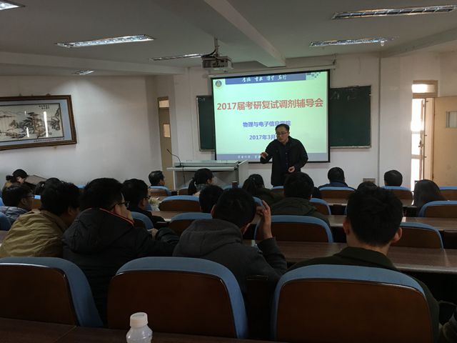 于3月7日下午在综合楼三楼会议室召开了2013级本科生考研复试调剂辅导会。副院长郑贤锋、院党委副书记吴长义、各专业负责人、毕业班辅导员及2017届考研学子参加了本次会议。