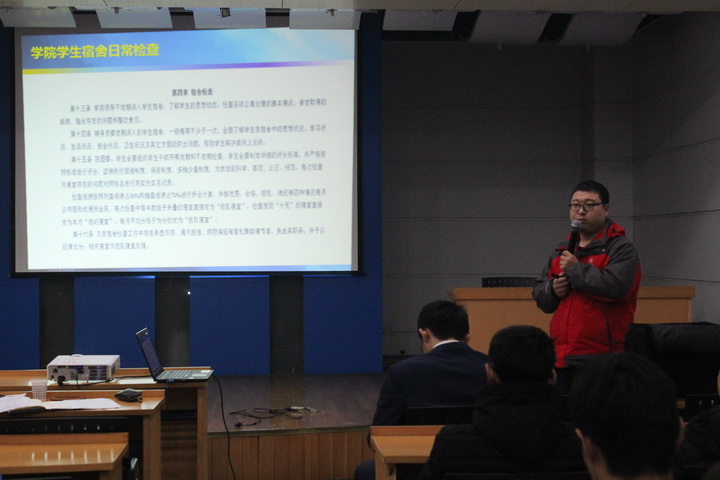 米佳佳在会上强调学院会按照“全覆盖、零容忍”的总体要求,不留死角、不留盲区地开展宿舍安全隐患全面排查整治工作。学院将通过学生自查、学生会普查、辅导员抽查、领导检查等方式相结合的方式,列清宿舍问题清单,排查安全隐患,补齐安全短板,进一步增加学生的安全意识,促进寝室的安全管理。宋凤楼结合时代特点,结合自身经历,结合学院要求,指导学生如何创建文明寝室。在大会上,秦瑾琼宣读了《无翼鸟