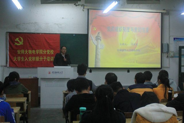 吴书记以大学生就业难问题为背景,以大学生的学习生活为脉络,以大学生的思想动态为基础,引入到本课内容的过渡。首先,吴书记带领大家学习党的组织制度,他围绕民主集中制的六大原则,详细讲解了民主集中制的主要内容和科学内涵,强调民主集中制是我们党和国家的根本组织制度和领导制度。随后,吴书记图文并茂的介绍了党的各级主要组织机构,介绍了各机构的主要职责和工作内容,加深大家对党组织的了解。在谈到党的宗旨时,吴书记鼓励在场入党积极分子要学习党“全心全意为人民服务”的精神,学会学习、学会做人、学会服务他人。并结合自身经历,讲述了在台湾进行学务学习期间的一些体会,与我们共同分享了他的经历。他谈到最为深刻的便是台湾实践大学对学生的要求“礼貌,整洁,物归原处”,简简单单,却透露出浓浓的人文情怀,更进一步要求我们做到正确地理解作为一名合格的大学生、一名合格的党员所需要履行的义务和责任。